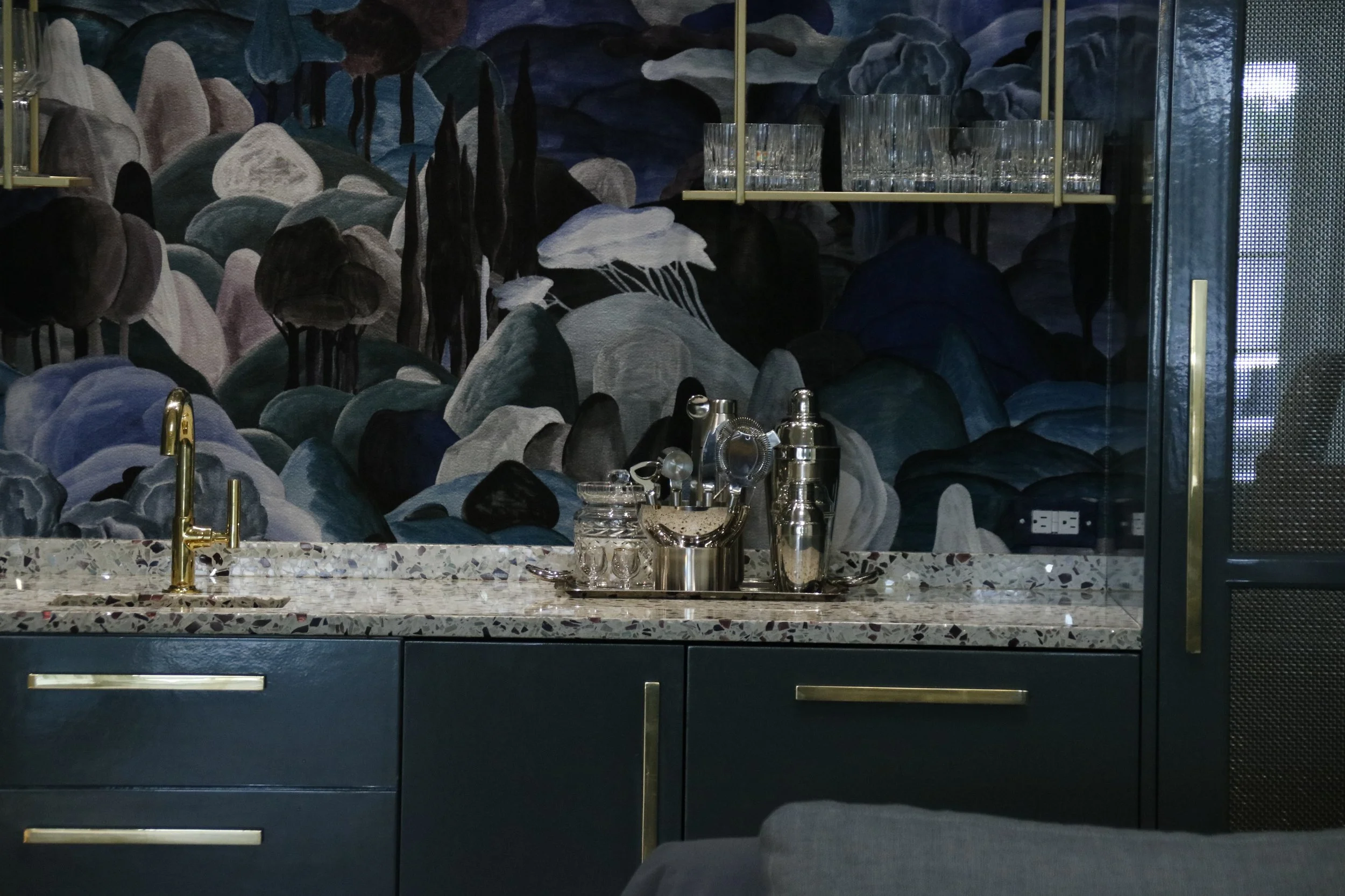 This project began with a clear vision: to elevate an existing bar into a refined entertaining space, perfect for intimate gatherings or events.